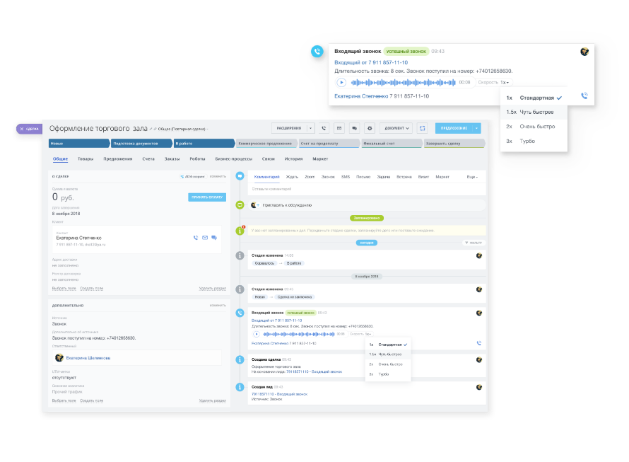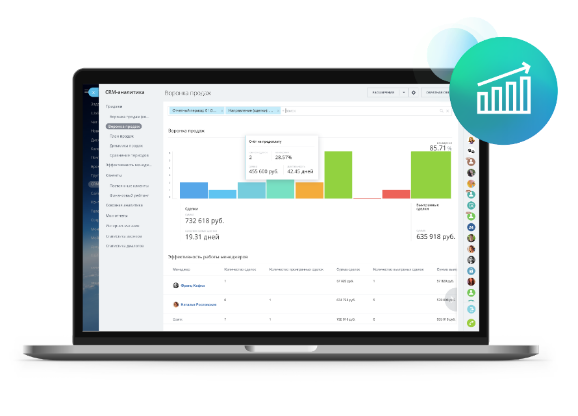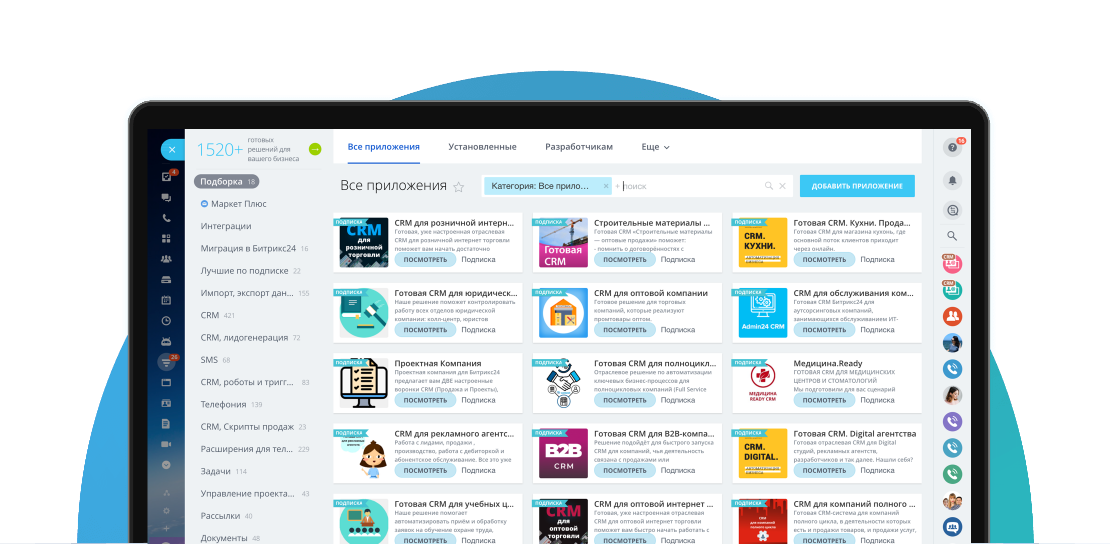 Всё необходимое для ведения клиентской базы, совместной работы со сделками и документами, управленческого учёта, автоматизации и наращивания продаж.